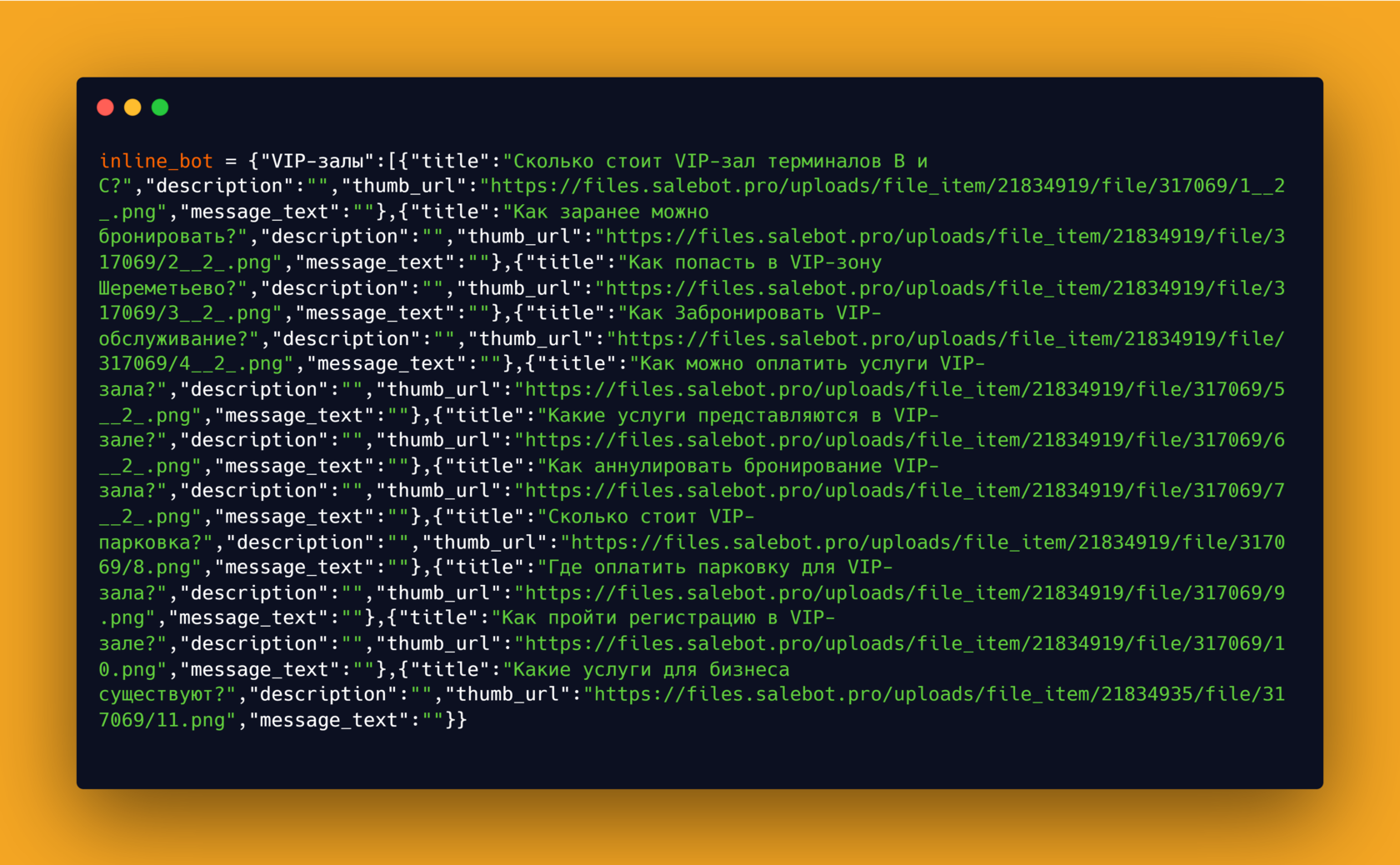 разработать кастомного бота для VIP- и бизнес-залов аэропорта Шереметьево.